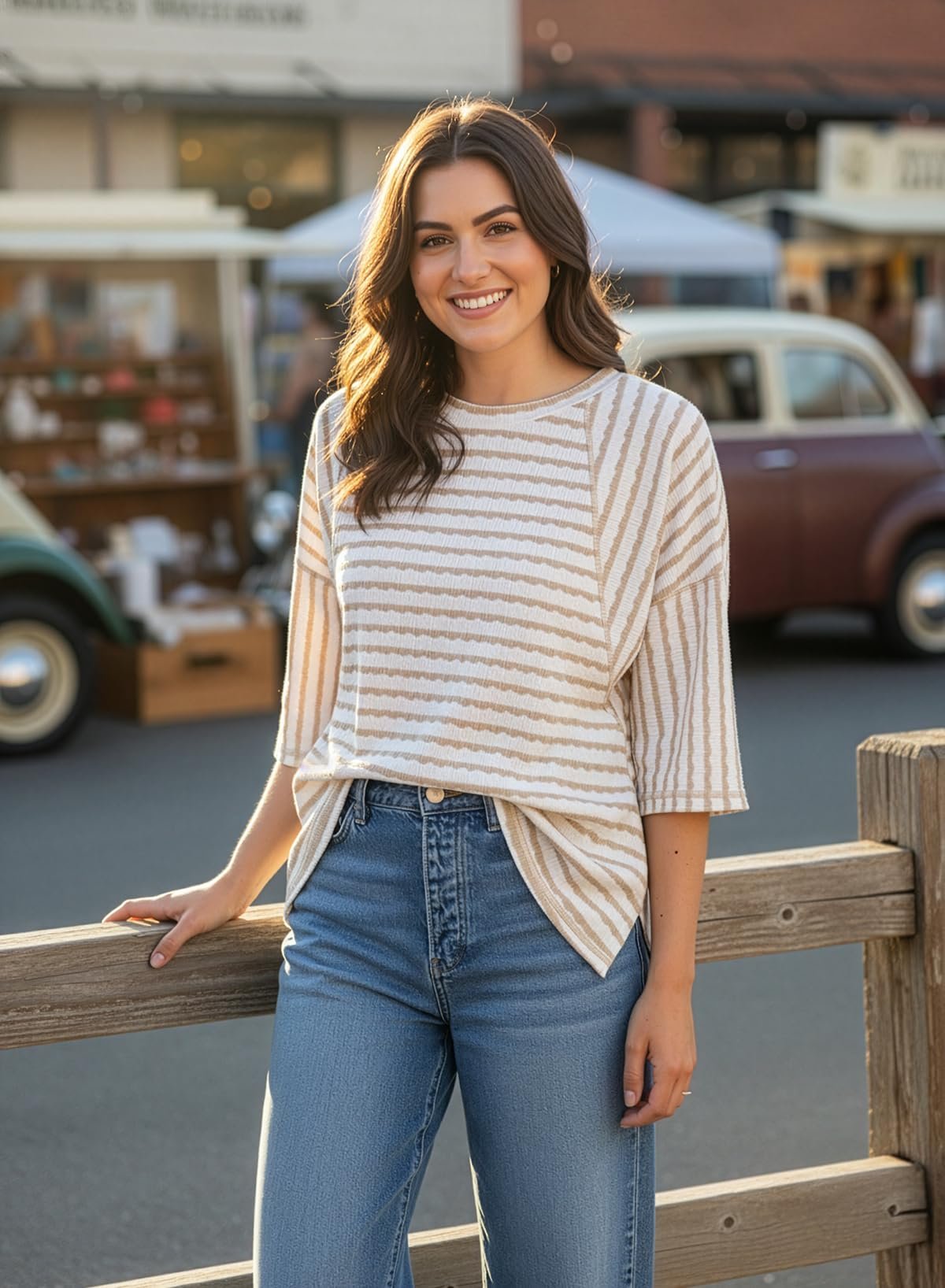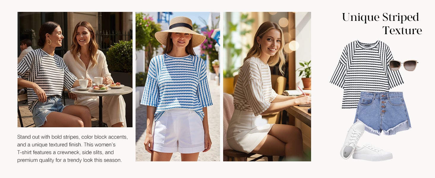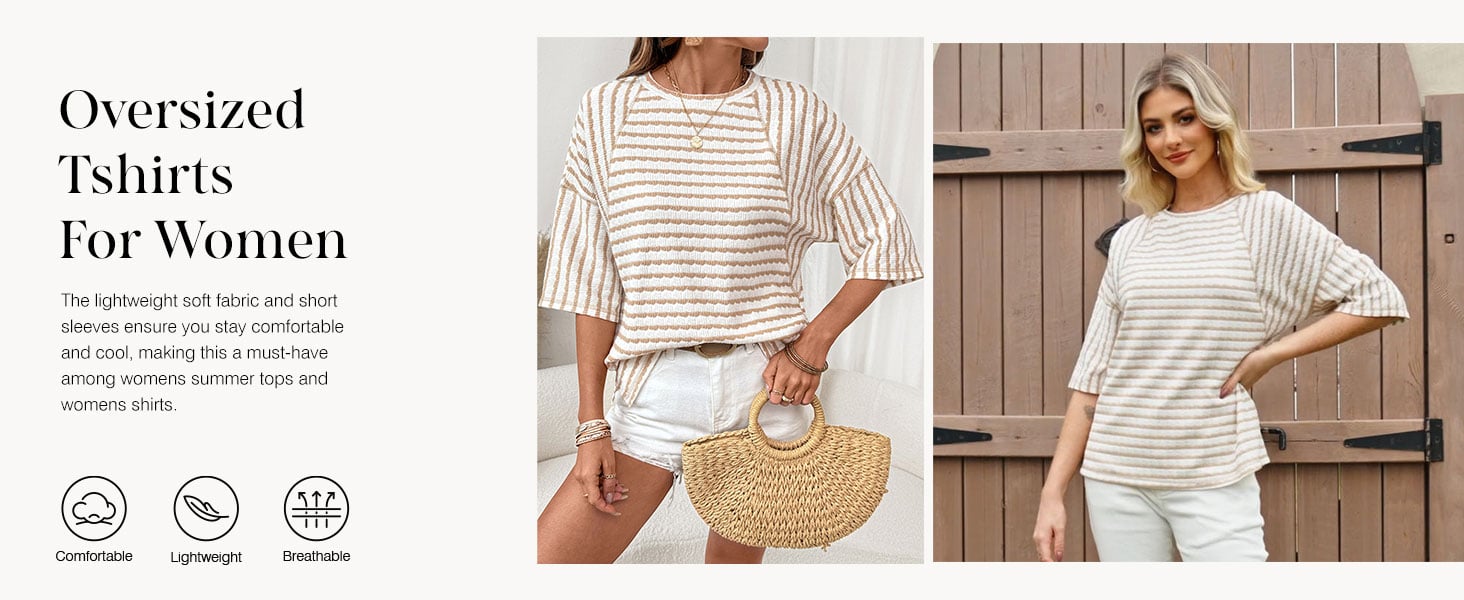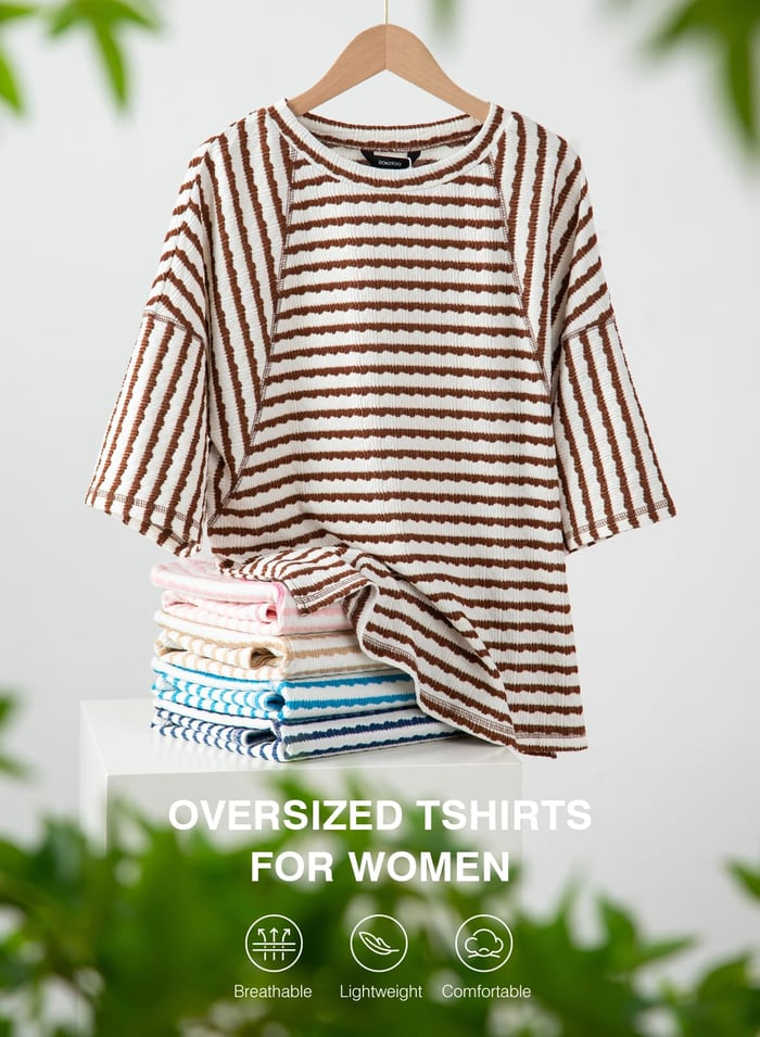 Tired of stiff, tight tees that don’t flatter your shape or keep you cool in summer? 🙅♀️ Looking for a soft, trendy top that works for school, work, workouts, dates, and daily wear — all in one? Our Oversized Striped Color Block Short Sleeve Tops are your new go-to for effortless comfort and head‑turning style!
